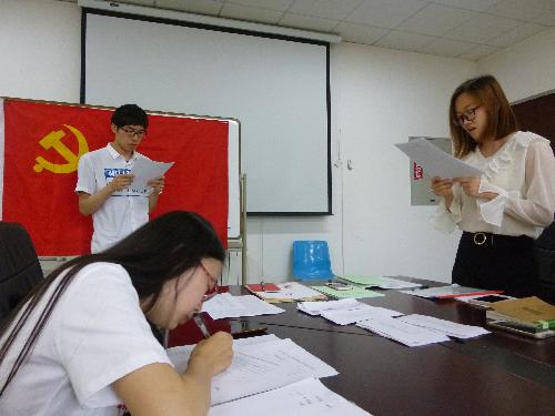 我院研究生党支部正式党员34名,预备党员5名,此次会议到会党员30名,超过半数可以开会。今天大会的议题是讨论李倩倩、申婷两位发展对象的入党申请,以及预备党员黄希、张悦涵两位同志转为正式党员的申请。